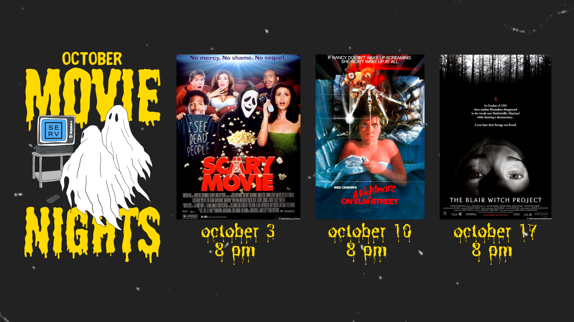 Join us for a series of spooky movies at SERV in October!