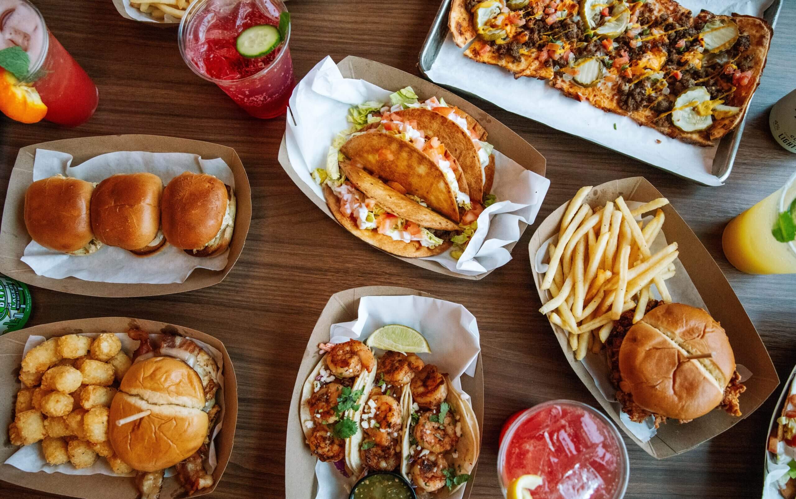 Stop by our outdoor food hall featuring street tacos, smash burgers, pizza & wings, healthy bowls, & game day sides— a little something for everyone!